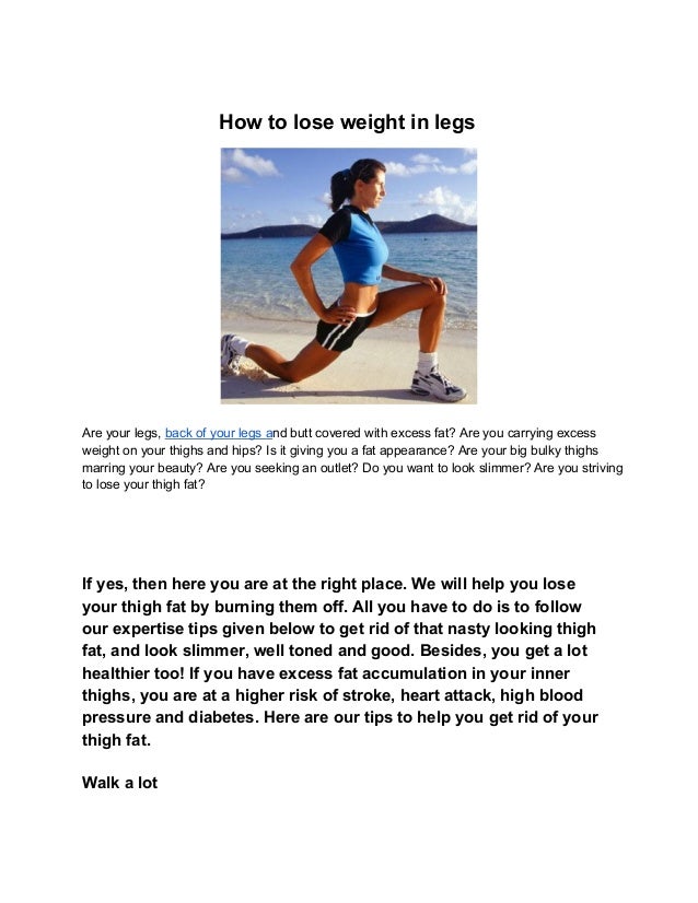 Http://weightlossforbusywomenonline.b Losing weight from your legs isn't difficult. You just have to get your metabolism signalling back. You'll lose weight from all'problem' areas of the body. ... View Video